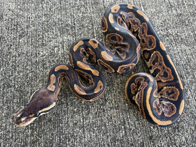 We currently have baby Black Pastel Ball Pythons for sale that are captive bred. Snakes at Sunset feeds them regular sized mice or apropriately sized rat chubs.. The Black Pastel Ball Pythons for sale are aprox 12-18″ in length. These Ball Pythons for sale are 2020 babies